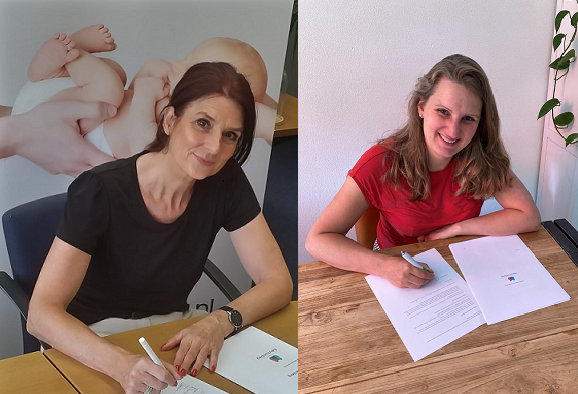 Op de foto: Lindy van Breda Vriesman, bestuurder BabythuisZorg Nederland en Sarith Boer, directeur Kraamzorg Monique Boer